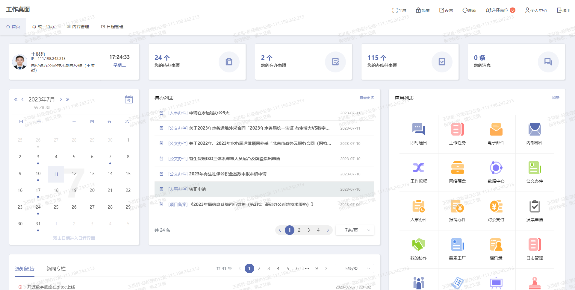 工作桌面、工作流程、即時通訊、網(wǎng)絡(luò)硬盤、電子郵件五大核心部件